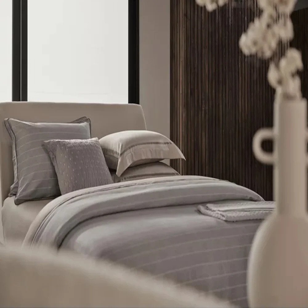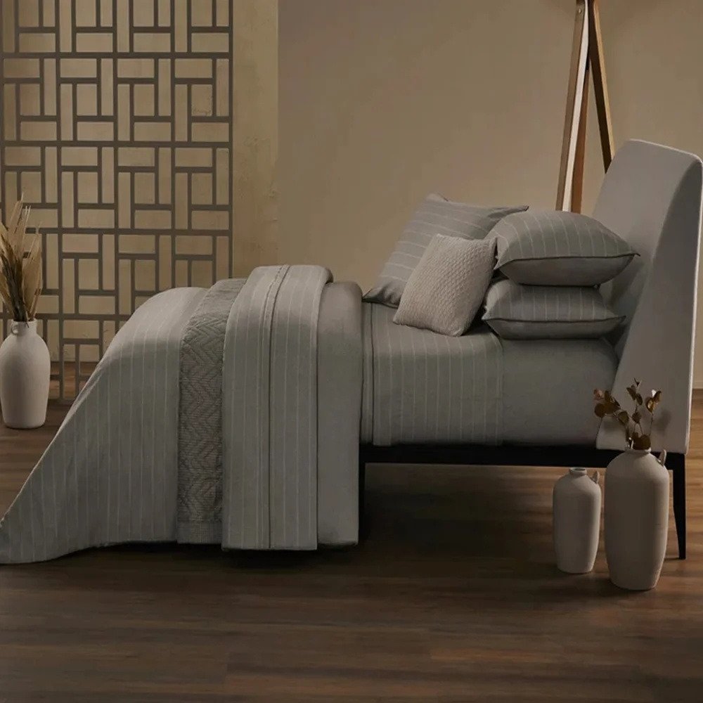 The Garment se inspira no Mood dessa vizinhança sofisticada para traduzir na roupa de cama uma personalidade marcante. Sua estampa nobre que remete ao linho com delicadas riscas de giz resgata uma moda clássica e atemporal capaz de valorizar ambientes de qualquer estilo.